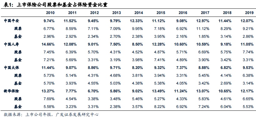 保险股具备较强的贝塔属性核心在于保险公司配置大量的权益资产(上市险企股票和基 金占比重约为8%-13%),带动公司投资收益率上行,提升公司ROE水平。