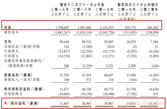 业绩更是出现“急刹车”。智通财经APP观察到,截至2019年12月31日止三个年度及截至2020年4月30日止四个月,公司总收益分别为17.41亿元、19.08亿元、21.42亿元及2.66亿元。截至2019年12月31日止三个年度,年/期內全面收入为1180.7万元、2896.7万元及3986.7万元,截至2020年4月30日止四个月,年/期內全面亏损416.2万元。