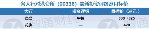 一、各大行对港交所(00338)最新投资评级及目标价