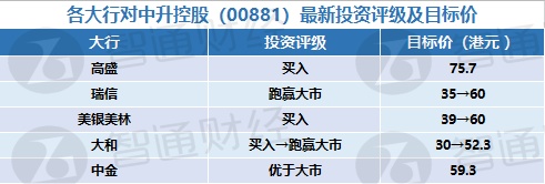 二、各大行对中升控股(00881)最新投资评级及目标价
