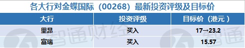 三、各大行对金蝶国际(00268)最新投资评级及目标价