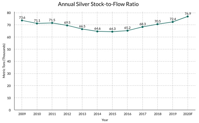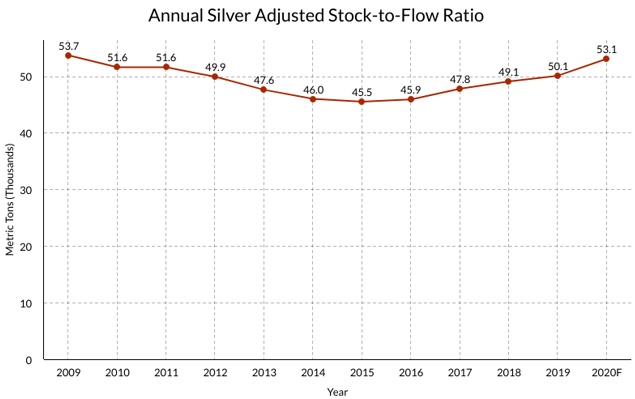 智通财经APP获悉,Hecht Research的创始人、分析师Brent Hecht近日发表文章表示,白银存量产出比(stock to flow ratio)可能有助于预测白银的价格走势,但该指标的计算是具有挑战性的,因为白银真正的存量是难以估计的。Hecht在文章中提出了两种计算白银存量产出比的方法。