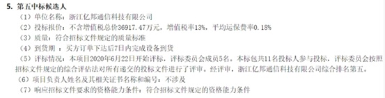 据中国电信披露,上述项目于今年6月22日开始评标,经评审,亿邦通信综合排名第五,符合招标文件规定的资格能力条件。
