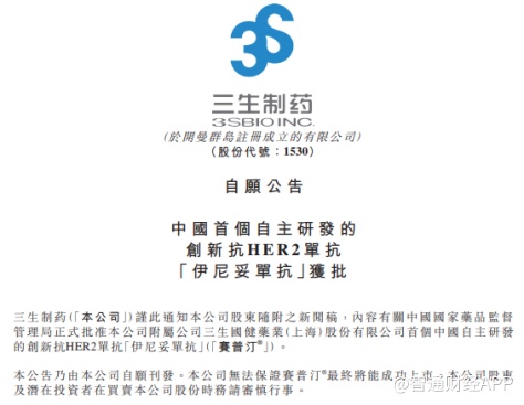 这是其子公司三生国健在中国获批上市的第三款治疗性抗体类药物,同时也是国内首个自主研发上市的创新抗HER2单抗药物。