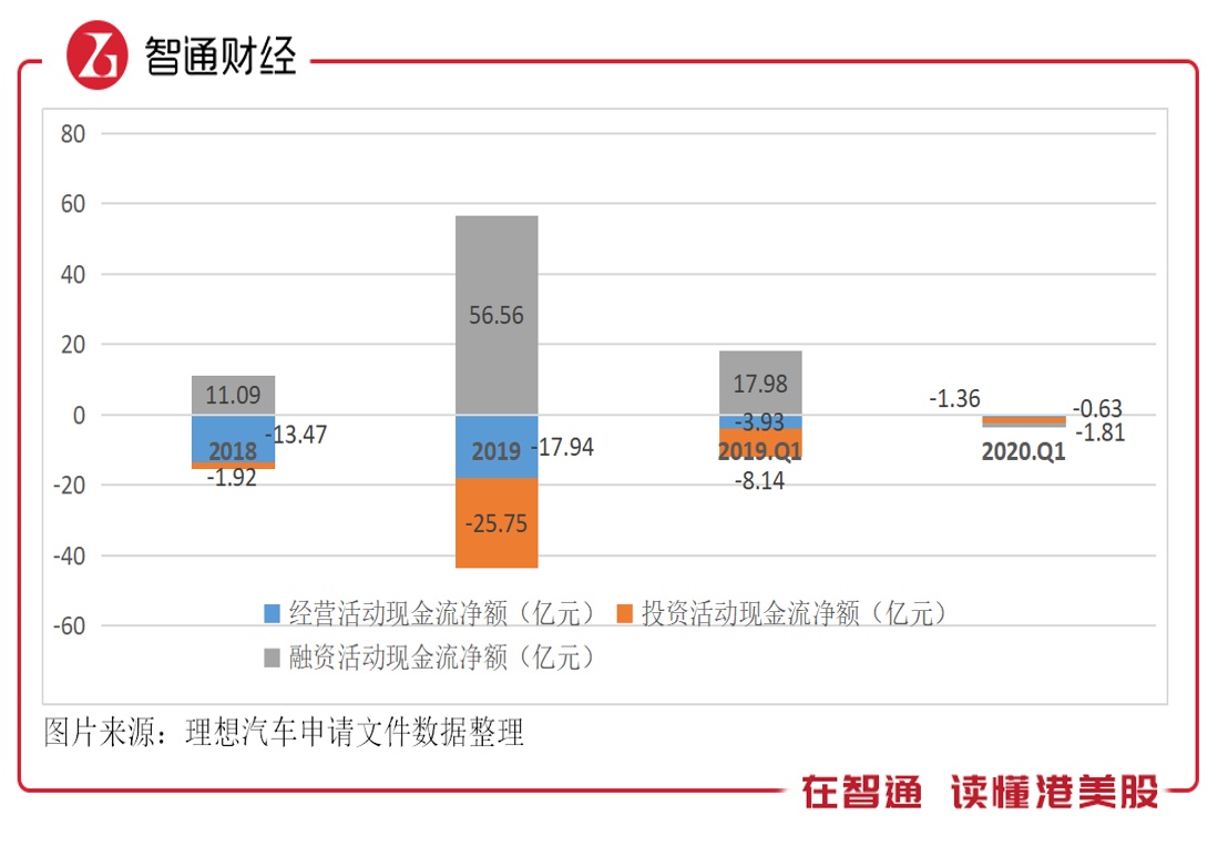 2018年至2020年Q1,该公司经营活动产生的现金流净额分别为-13.47亿元、-17.94亿元以及-0.63亿元,Q1大幅度改善主要为汽车销量上来了,上半年销量超过万辆,预计带来正向现金流,弥补投资净流出。而此次上市募资,也将带来超过1亿美元的融资现金流,优化资产负债表,目前该公司资产负债率49.5%,保持合理稳定。