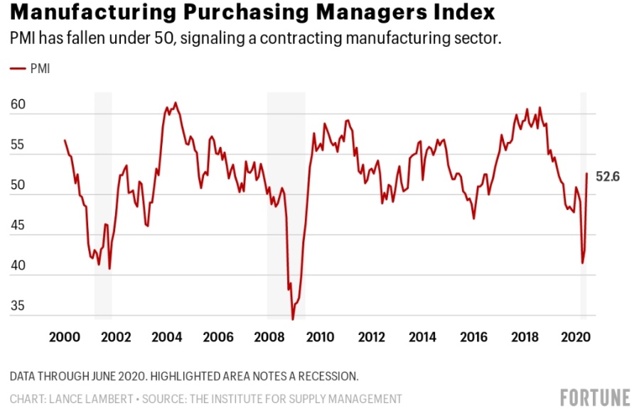 美国供应管理协会(ISM)采购经理人指数(PMI) 6月份为52.6%,高于5月份的43.1%和4月份的41.5%。PMI低于50%表明制造业正在收缩。因此,52.6%的数值意味着美国制造业再次增长。