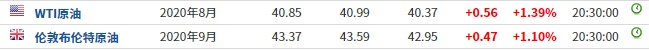 截至发稿,WTI原油涨1.39%,报40.85美元/桶。布伦特原油涨1.10%,报43.37美元/桶。