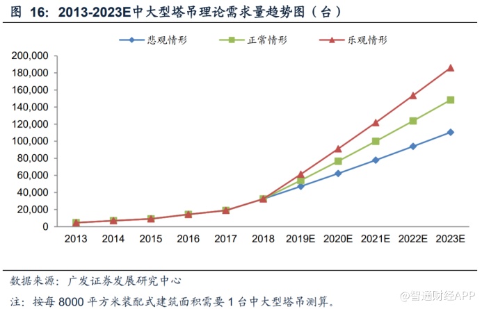 其中,装配式建筑被认为是行业增长的一大驱动因素之一。据广发证券预计,随着国内装配式建筑项目的增多,行业对于起重力矩在150吨米以上的中大型塔机需求将得到增长,大型化、重型化将成为行业未来趋势。未来几年,中大型塔吊或将迎来强劲需求面利好势头。