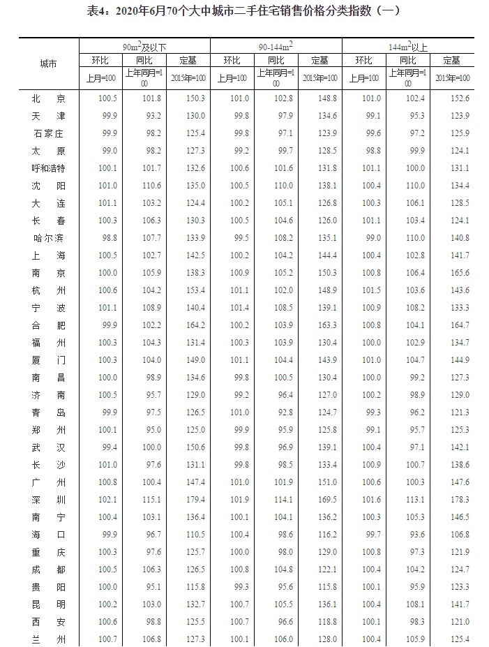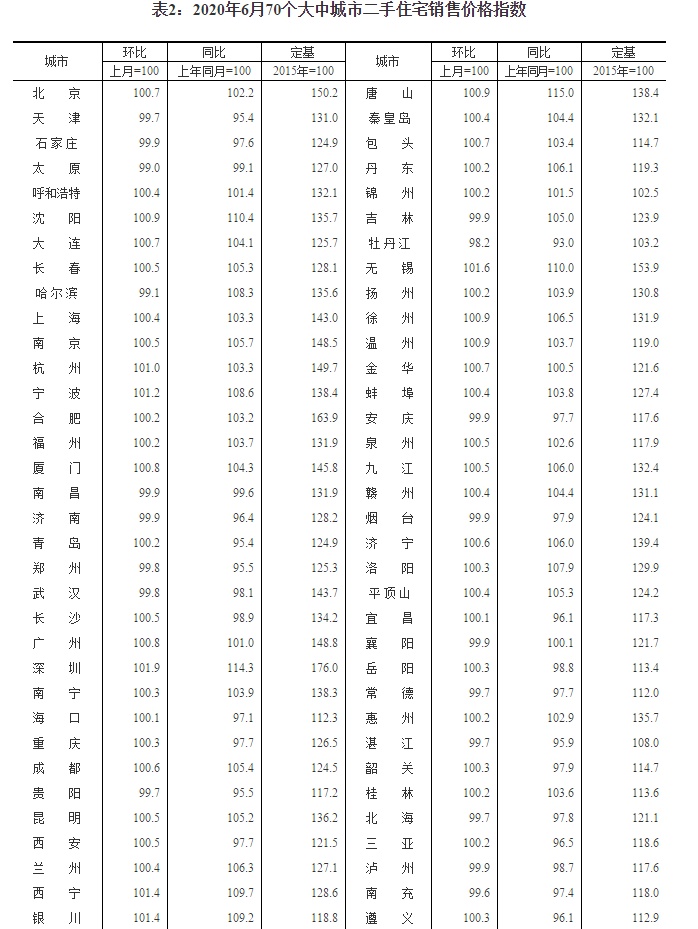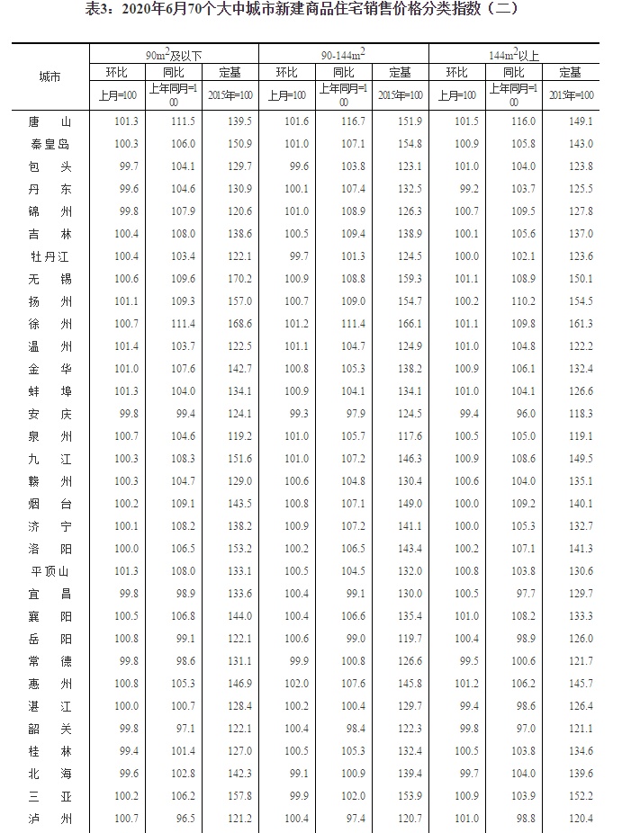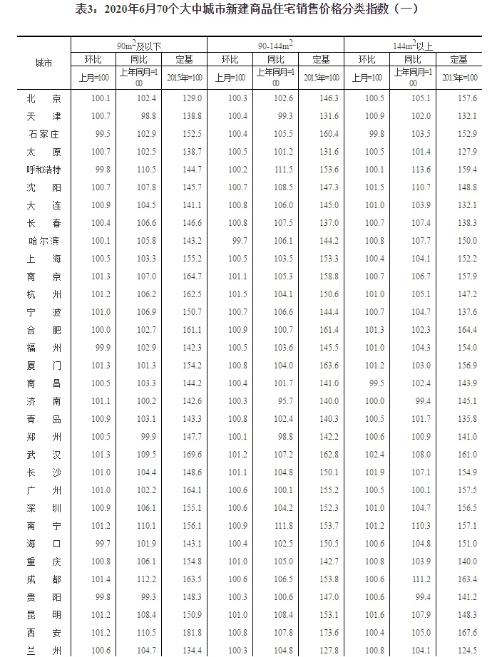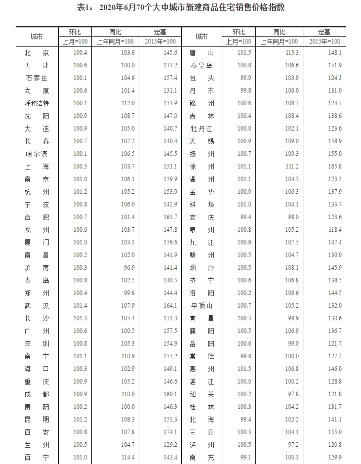 智通财经APP获悉,7月16日,国家统计局公布2020年6月份70个大中城市商品住宅销售价格变动情况。