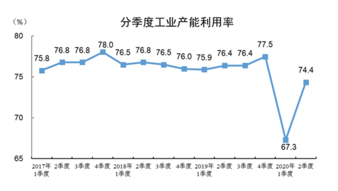 分主要行业看,二季度,煤炭开采和洗选业产能利用率为69.6%,食品制造业为70.4%,纺织业为72.7%,化学原料和化学制品制造业为74.2%,非金属矿物制品业为68.2%,黑色金属冶炼和压延加工业为78.4%,有色金属冶炼和压延加工业为79.2%,通用设备制造业为77.3%,专用设备制造业为77.6%,汽车制造业为74.6%,电气机械和器材制造业为78.1%,计算机、通信和其他电子设备制造业为78.4%。