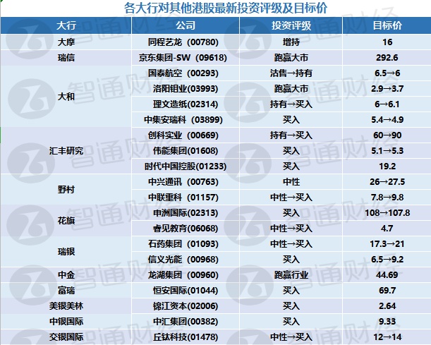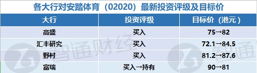 一、各大行对安踏体育(02020)最新投资评级及目标价