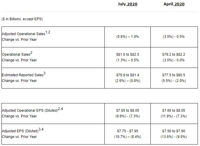 强生公司上调了2020年业绩指引。该公司预期2020年运营销售额在810-825亿美元之间,相当于同比降低1.3%至增加0.5%,此前预期全年运营销售额在792-822亿美元之间;预期全年经调整摊薄后的每股收益在7.75-7.95美元之间,相当于同比降低10.7%至增长8.4%,此前预期为7.50-7.90美元之间。