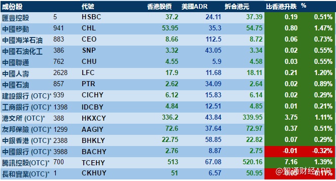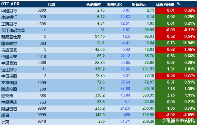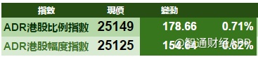 智通财经APP获悉,美股受挫,但港股ADR指数全日做好,按比例计算,收报25,149点,升178.66点或0.71%。