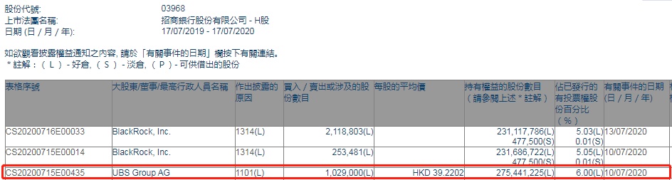 智通财经APP获悉,香港联交所最新资料显示,7月10日,瑞银增持招商银行(03968)102.9万股,每股作价39.2202港元,总金额约为4035.76万港元。增持后最新持股数目为2.75亿股,最新持股比例为6%。