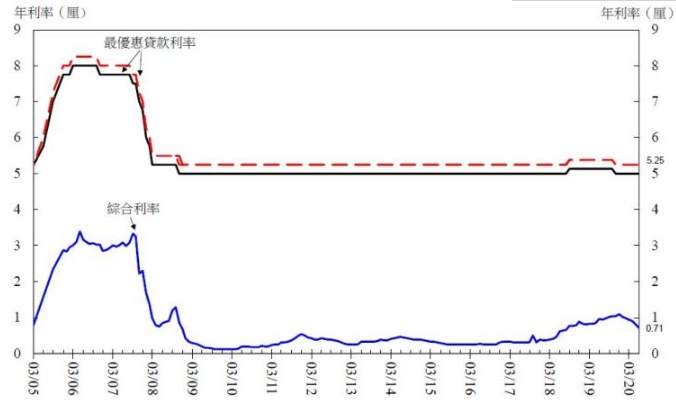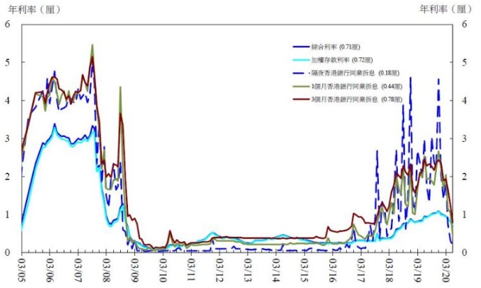 综合利率是根据约占银行体系总客户存款九成的零售银行所提供的资料编制。应注意综合利率只反映平均利息支出,并未涵盖借出贷款涉及的其他成本,如营运成本(如员工及租务支出)、信贷成本及对冲成本。