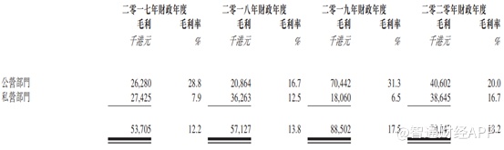 历年以来,公司整体毛利率介乎于约12.2%至18.2%之间,波动相对比较剧烈。这与公司来自公营、私营部门的项目和工程本身质量相关性较大。以2020财年为例,公营部门和私营部门所贡献收入相近,项目之间毛利率亦相差不大,则集团的整体毛利率超过18%,而在2017财年,即便公营部门的毛利率接近30%,但来自私营部门的毛利率近7.9%,因此对整体毛利率造成了拖累。