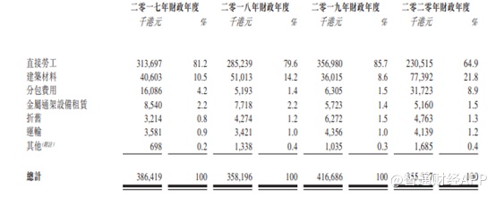 成本方面来看,天任集团的服务成本基本维持在3亿港元以上,历年来均占收入八成以上,直接劳工及建筑材料的成本是公司服务成本的主要组成部分。