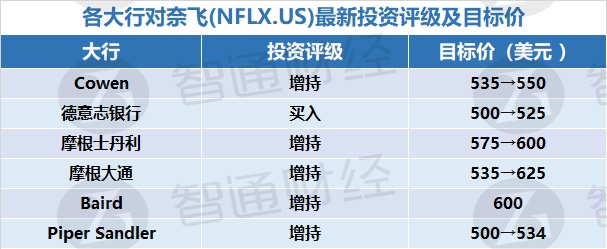 Swinburne)将奈飞的目标股价从575美元上调至600美元,并维持对该公司股票“增持”评级。