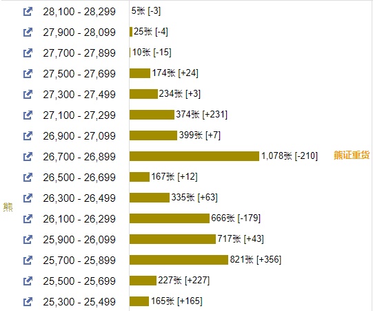 智通财经APP获悉,截至7月17日,恒指最新的牛熊街货比例53:47。摩根恒指牛熊证街货分布图中的数据显示,熊证街货重货区在26700-26899区间,该区间最新熊证数量为1078张,较上一交易日减少210张,最多新增25700-25899区间,该区间最新熊证数量为821张,较上一交易日增加356张。牛证街货重货区在24700-24899区间,该区间最新牛证数量为1076张,较上一交易日增加5张,最多新增区间也在24900-25099区间,该区间最新牛证数量为300张,较上一交易日增加105张。