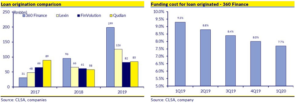 里昂证券认为,360金融的风控策略使其拥有话语权,在与金融机构议价资金成本时能够获取资金成本优势。尽管该公司一季度逾期率因公共卫生事件影响上升,但因其客户质量更好,预测其资产质量恢复速度将优于同业公司。
