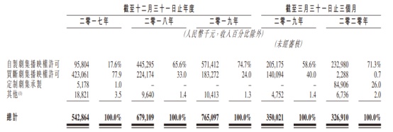 公司的收入主要来自(i)向电视台、网络视频平台或第三方发行商许可自制剧集播映权;(ii)将来自网络视频平台或剧集制片商的买断剧集播映权许可予电视台、第三方发行商或网络视频平台;及(iii)根据网络视频平台订单提供定制剧集承制服务。