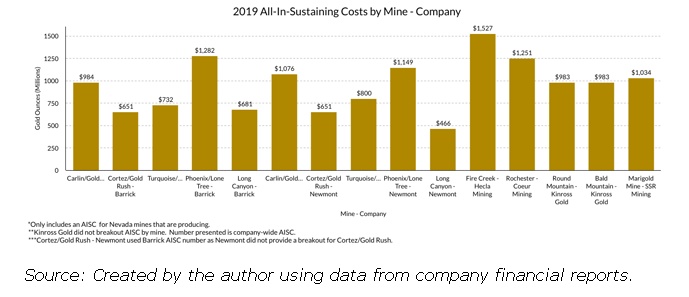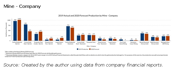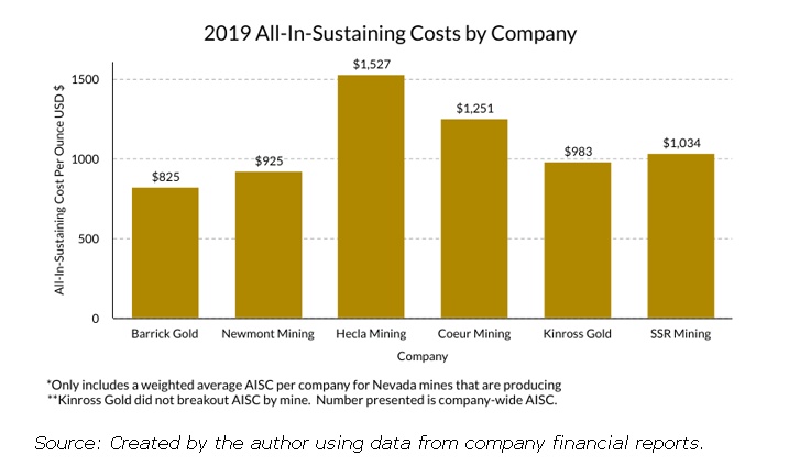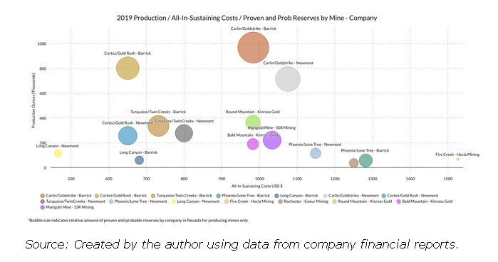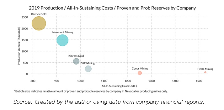 Brent Hecht表示,内华达州是美国最大的黄金生产州,并在以下提供了在内华达州六大经营生产金矿的公司的介绍及其2019年的实际产量以及2020年的预测产量,以及每个金矿的全部维持成本(AISC)、探明储量和可能储量。