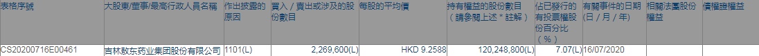 智通财经APP获悉,香港联交所最新资料显示,7月16日,吉林敖东药业集团增持广发证券(01776)226.96万股,每股作价9.2588港元,总金额约为2101.38万港元。增持后最新持股数目约为1.20亿股,最新持股比例为7.07%。