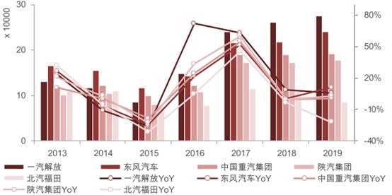 最新数据显示,中国重汽产品结构升级已经十分明显。其中公司的高端重卡汕德卡,2020年1-5月销量已经超过2019年全年(约1.2万辆),预计2020全年销量或将达到4万辆以上。从客户需求来看,大型快递与物流公司在公路运输占据的份额逐步提升,这些专业的物流运输团队对重卡的可靠性、油耗、出勤率要求显著更高。相比于一次性的购车成本,更多的关注重卡的全生命周期成本,汕德卡品牌满足了国内市场对高端重卡需求的提升。同时,公司采用MAN技术国六天然气发动机的天然气重卡,气耗与竞品相比低10%左右,在国六阶段具有非常强的产品竞争力,2020年1-5月,公司天然气重卡市占率达27%,位列市场第一,较2019年全年市占率大幅提升10个百分点。