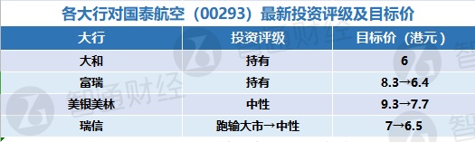 二、各大行对国泰航空(00293)最新投资评级及目标价