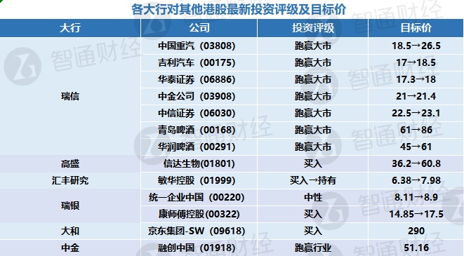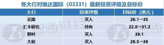 三、各大行对维达国际(03331)最新投资评级及目标价