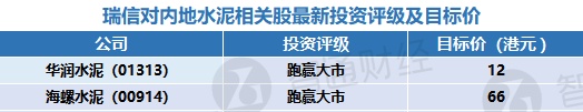 六、瑞信对内地水泥相关股最新投资评级及目标价