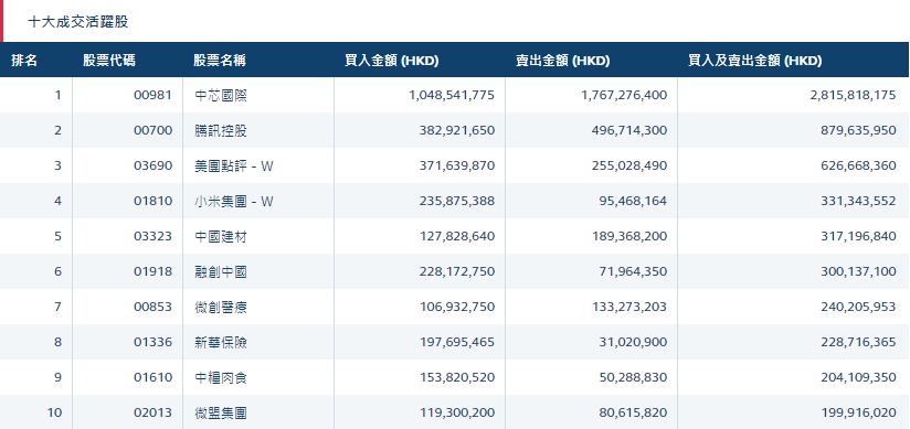小米集团-W(01810)获净买入6.01亿港元。消息面上,花旗布发研报指,对小米的长期前景保持积极的看法,这是由强劲的人工智能技术与物联网在实际应用中的落地融合机会和5G智能手机扩散所驱动。该行认为,小米的物联网业务可以在全球扩张上继续快速增长,并在智能家居采用趋势的基础上加强生态系统。另一方面,小米的智能手机业务可能从消费者降级和5G扩散机会中获得份额。花旗预计,小米以其价值主张引领5G普及,对消费者更具吸引力。花旗进一步表示,近期市场震荡为长期投资者提供了更好的买入机会。 该行对于小米重申积极看法,给予“买入”评级,目标价15.6港元。