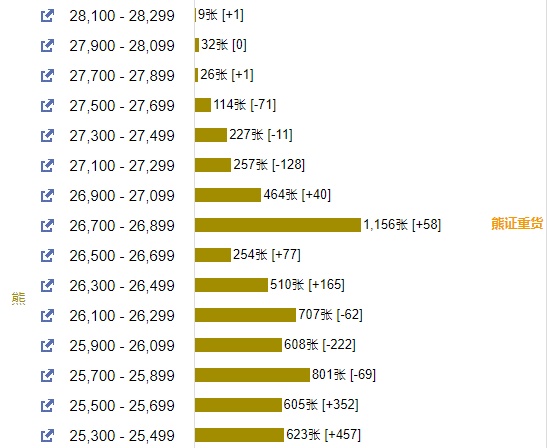 智通财经APP获悉,截至7月20日,恒指最新的牛熊街货比例55:45。摩根恒指牛熊证街货分布图中的数据显示,熊证街货重货区在26700-26899区间,该区间最新熊证数量为1156张,较上一交易日增加58张,最多新增25300-25499区间,该区间最新熊证数量为623张,较上一交易日增加457张。牛证街货重货区在24400-24599区间,该区间最新牛证数量为1314张,较上一交易日增加339张,最多新增区间也在该区间。