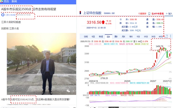 之后小龙再发表2019年4月发表,A股牛市乐观可见3500/4235点。结果上证指数暂时最高位是3450点。