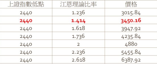 那如果以2440点作起点,利用比率关系。如果按图中显示,那如果上证指数能升穿3450点,有机会上试3947/4235点。