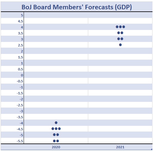 除了通货紧缩,日本还面临着暗淡的增长前景。据悉,日本央行4月报告称,预计今年日本经济将收缩3%至5%。在最近一次会议上,该行将其预测更新至-4.7%。