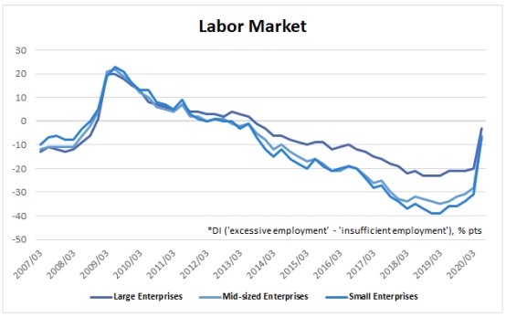据悉,6月日本央行短观调查最新数据应该在政策委员会成员中敲响警钟。由于多数企业业绩不佳和产能过剩的原因,通缩状况会在近期持续。