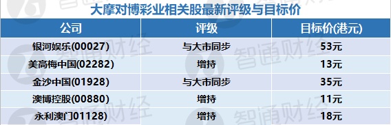 智通财经APP获悉,摩根士丹利发表报告,列出部分澳门博彩股的最新投资评级及目标价如下: