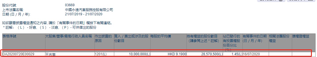 智通财经APP获悉,香港联交所最新资料显示,7月16日,副董事长王志高减持永达汽车(03669)1000万股,每股作价9.19港元,涉及总金额约为9190万港元。智通财经APP获悉,减持后最新持股数目约为2857.05万股,最新持股比例1.45%。