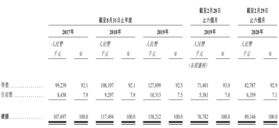 收入结构上来看,公司的全部收入均来自于向学生收取的学费和住宿费。其中,来自于学费的收入占公司历年来收入的九成以上,余下则为住宿费。收入的不断增长亦与公司近年来上调了所有专业的学费,以反映增加的营运成本及专业与课程设置的调整相关。不过,需要注意的是,公司全部收入均来自于单一学校,经营业绩及增长前景的集中风险较大。