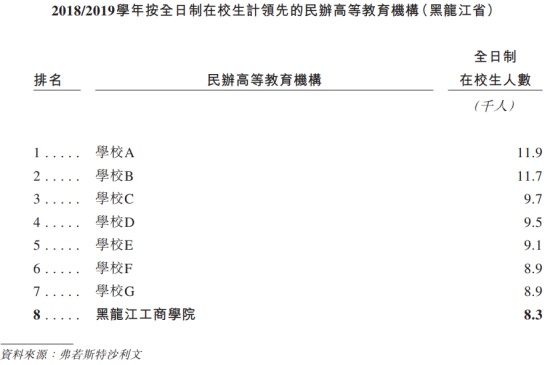 虽然自称为“大型”,但与目前港股上市教育企业相比,立德的实际规模却并未如其所言。公司旗下仅经营一所高校,即为黑龙江工商学院。截至2020年2月末,黑龙江工商学院的在校生人数总共分别为8807人及6739人,教师团队分别为450人及465人。