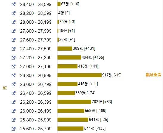 智通财经APP获悉,截至7月21日,恒指最新的牛熊街货比例61:39。摩根恒指牛熊证街货分布图中的数据显示,熊证街货重货区在26800-26999区间,该区间最新熊证数量为917张,较上一交易日减少15张,最多新增27200-27399区间,该区间最新熊证数量为494张,较上一交易日增加155张。牛证街货重货区在24400-24599区间,该区间最新牛证数量为1168张,较上一交易日减少146张,最多新增区间24600-24799区间,该区间最新熊证数量为1124张,较上一交易日增加110张。