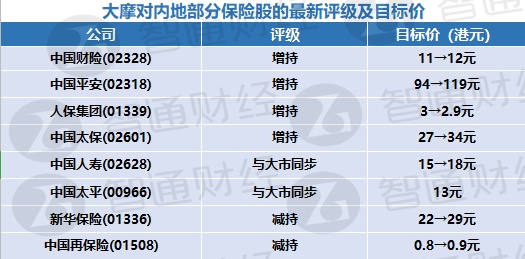 智通财经APP获悉,摩根士丹利发表报告,更新了对内地部分保险股的投资评级及目标价: