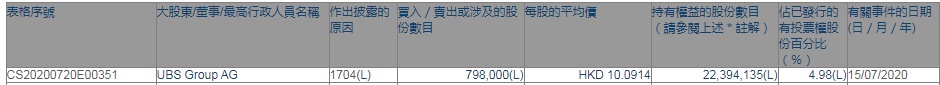 智通财经APP获悉,香港联交所最新资料显示,7月15日,瑞银减持福莱特玻璃(06865)79.8万股,每股作价10.0914港元,总金额约为805.29万港元。减持后最新持股数目约为2239.4万股,最新持股比例为4.98%。