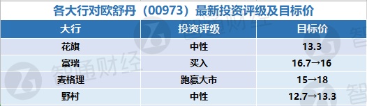 六、各大行对欧舒丹(00973)最新投资评级及目标价