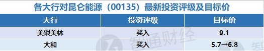 七、各大行对昆仑能源(00135)最新投资评级及目标价
