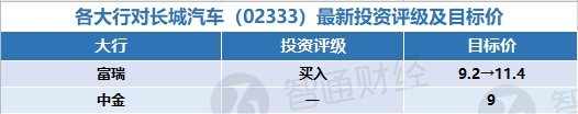 八、各大行对长城汽车(02333)最新投资评级及目标价
