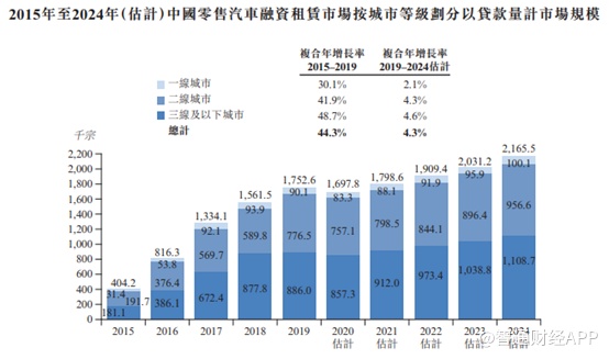 具体到汽车融资租赁行业,2015年至2019年,中国新及已使用汽车零售汽车融资租赁市场贷款宗数从40万增至180万宗,年复合增长44.3%。其中二线城市从19.2万宗增至77.6万宗,年复合增长41.9%,三线及以下地区从118.1万宗增至88.6万宗,年复合增长48.7%。