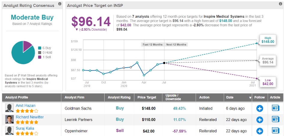 加上截至2020年第二季度其1.75亿美元的强劲现金状况,该分析师给予INSP“买入”评级,目标价148元。如果该观点在未来几个月得到验证,意味着股价可能上涨50%。