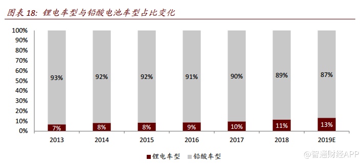 电动化升级是趋势:国内电动化渗透率已经较高,主要看铅酸高端化和向锂电的转换 国内市场电动化渗透率高,但电池低端化严重。